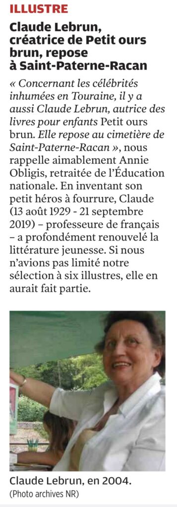 Aujourd’hui, Claude Lebrun repose au cimetière de Saint-Paterne-Racan, ici en Touraine.