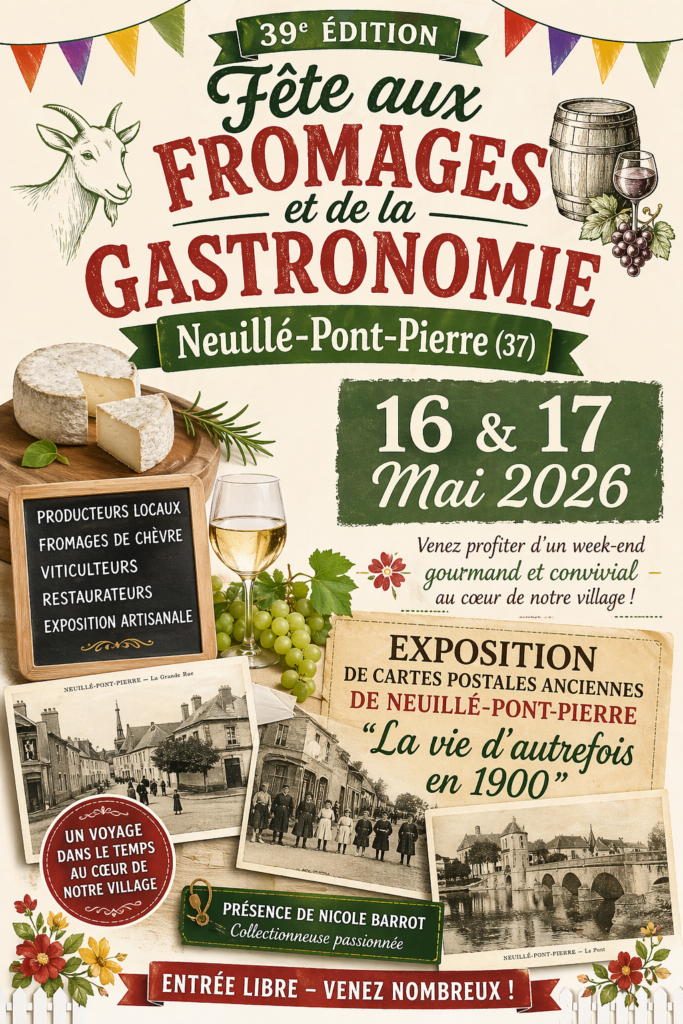Les 16 et 17 mai prochains, Neuillé-Pont-Pierre se mettra à l’heure de la gourmandise et de la convivialité avec la 39ᵉ édition de la Fête aux Fromages et de la Gastronomie.