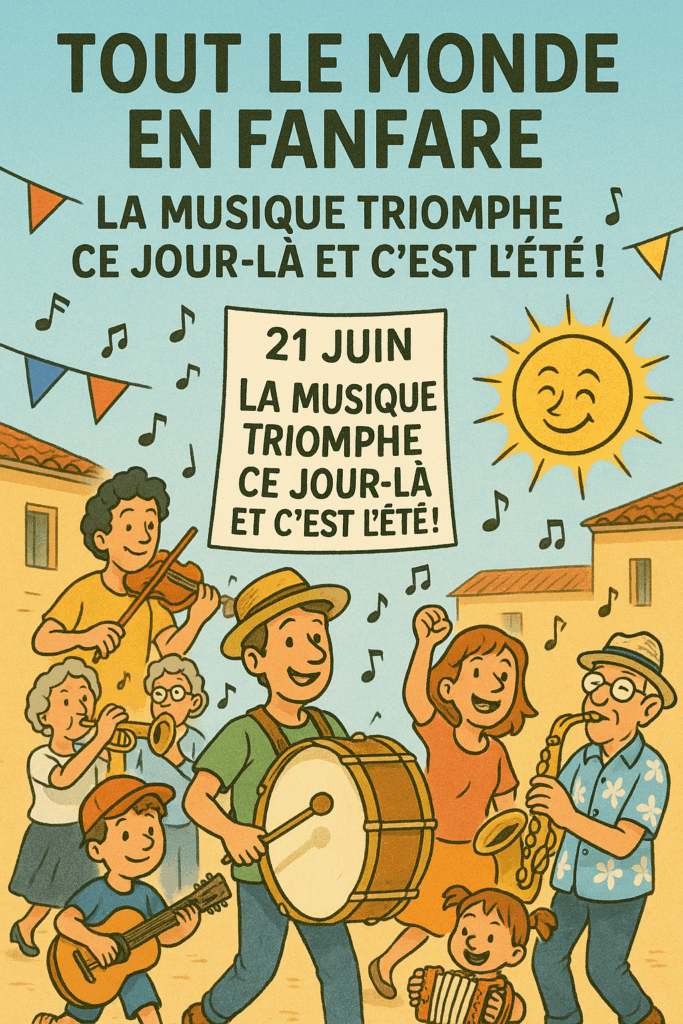 La Fête de la Musique, célébrée chaque 21 juin, marque le début de l’été en transformant les rues, places et balcons en scènes ouvertes. Musiciens amateurs ou professionnels partagent leur passion dans une ambiance joyeuse, festive et populaire, où la musique se vit librement, partout et par tous.