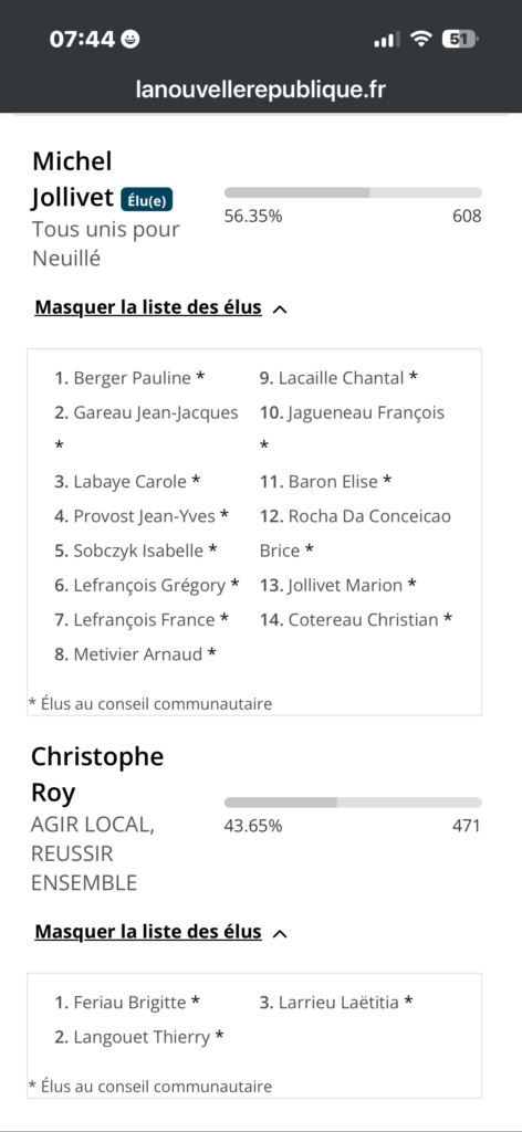 Résultats : Neuillé Pont Pierre (37)