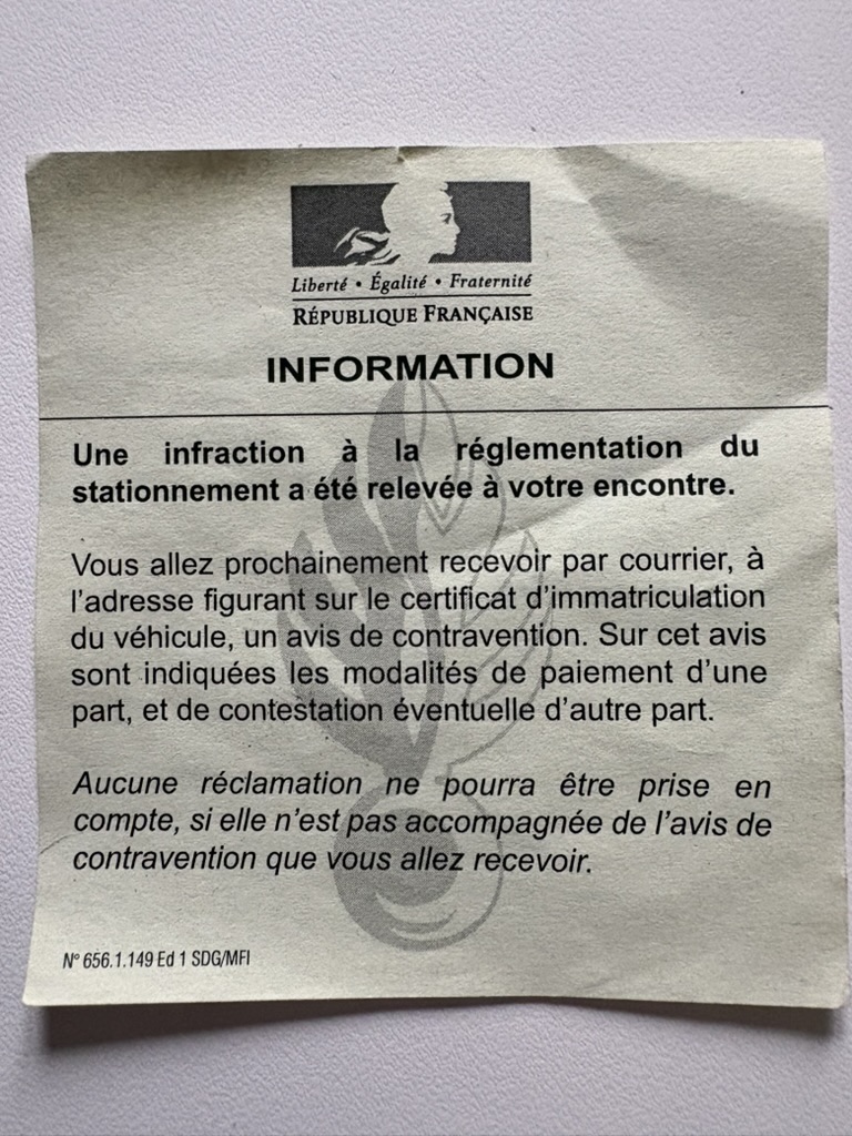 Je connais une autre personne ayant eu ce genre de PV récemment sur Tours, pour faute de n’avoir mis son disque mais le numéro était inscrit.